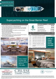 YOT Superyachting on the Great Barrier Reef – Phoenix One – 6nts – 16Oct22Jolee Gallagher2021-07-13T06:34:39+10:00