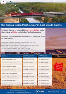 The Ghan and Ind Pacific LAST MINUTE CABINS