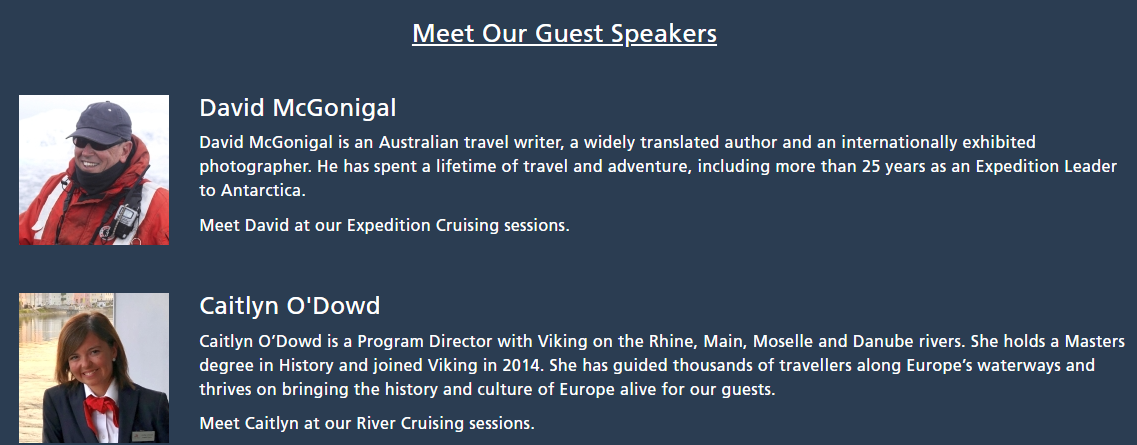 Plus, if you’d like to learn about something specific; whether it be an itinerary, destination or ship, come along for a one-on-one with a Viking expert.